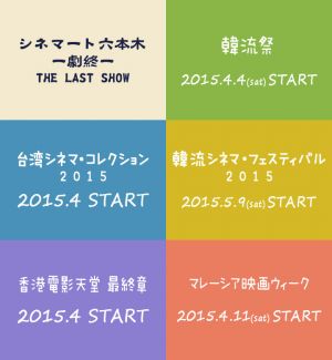 そのラインナップは、〈韓流祭〉〈台湾シネマ・コレクション 2015〉〈香港電影天堂 最終章〉〈マレーシア映画ウィーク〉〈韓流シネマ・フェスティバル2015〉となっている。最後の三か月は、純度 100%のアジア映画専門館となる。