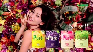 「大島優子」さんの歌声と力強いまなざしで、 毎日を全力で頑張る女性に、元気と癒しをお届けする「ピュレグミ」のあまずっぱい美味しさを表現しています。