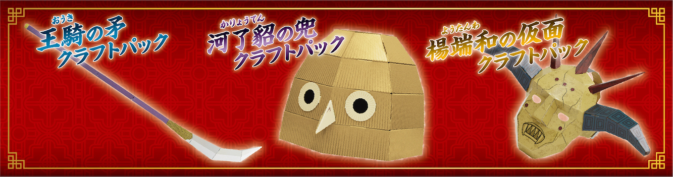 全3種類のパッケージを組み立てると人気キャラクターの武具が手に入る!