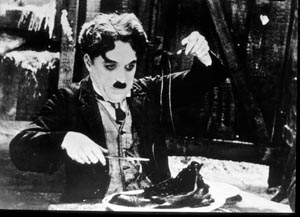 空腹のあまり靴を食べたり、崖っぷちの山小屋からの脱出など、有名なシーンが数多く登場する代表作のひとつ。