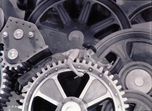 1930 年代の資本主義社会や機械化を、チャップリン独特の笑いで風刺した喜劇映画の名作。酒場のシーンで一曲歌う以外は一言もセリフを喋らず、コミカルな動きと映像だけで見事にテーマを訴える彼の表現力、センスは70 年以上たった今でも色あせない。