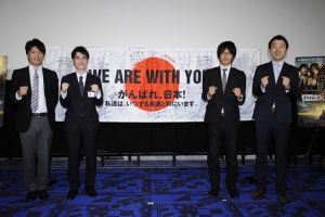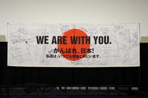 この“横断幕”は、本作のスタッフ・キャストが、日本の「パイレーツ」ファンを勇気づけるために作成したもので、会見時にジョニー・デップが語った“私達とともに海を渡り、ロンドンやロシアへ持っていきます。世界規模で日本を支援したい”というエールに対し、ゲストとして出席した中田英寿氏が横断幕に「応援のメッセージ」を集めることを提案した特別な横断幕。