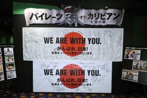 USプレミア、ロシア・プレミア、UKプレミアを経て、5月19日に日本に到着。その後、日本国内でもジャパン・プレミア他、全国各地で「応援メッセージ」を集め、本作宣伝プロデューサー高橋良太からMOVIX仙台の劇場支配人氏家亨氏、MOVIX利府の劇場支配人秋元宏樹氏、ワーナー・マイカル・シネマズ名取エアリの総支配人島野洋平氏に贈呈された。ジョニー・デップほかスタッフ達の想いがこもった“横断幕”を受け取った氏家氏は「とても嬉しいです。ありがとうございます。メッセージをいただいた方々の熱い思いをお客様に届けて行きたいです。」とコメント。