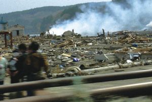 東日本大震災発生から一か月あまり、被災地にカメラは入った。津波によって何もかもなぎ倒され、瓦礫が山となり、表面が露わになって荒れた土地の、土の色。そこを吹く風や海の音、潮の匂い……。それらを次々に収めていく。