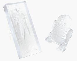 『スター・ウォーズ EP5』の名場面、ハン・ソロが炭素冷凍されてしまうシーンを簡単に再現できたり、人気キャラクター“R2-D2”や“ダース・ベイダー”の特徴的なマスク部分を象ったりした「シリコンアイストレー」シリーズ:海外では既に20万個を売り上げた人気商品が日本でも発売。ファンには勿論のこと、パーティーグッズやシャレの効いたプレゼントに最適である。柔らかく、耐久性の高いシリコン製となっているので、氷だけでなく、チョコレートやゼリー、更に230℃以内であればケーキ等を焼く事も可能。遊びの幅が広がる商品である。