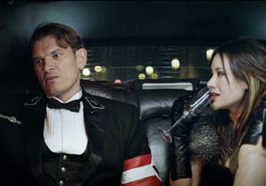そんな話題作『アイアン・スカイ』の初日が、ついに決定した!9月28日(金)より、TOHOシネマズ六本木ヒルズほか全国にて公開となる。そして、初日公開を記念して、今まで伏せられてきた場面写真が初公開となった!セクシーなナチ女こと地球学者レナーテ・リヒターとナチス将校クラウス・アドラーの画像となる。本作の主役であり、月面ナチス軍である二人の背後には、なんとアメリカの国旗が見えるではないか。ここが月の裏側でないことは確かだが、では、一体、ここはどこなのか。地球側との平和的な交渉しているようにも見えるが、いや、もしかすると。すでに地球を侵略した後ではないのか…。非常に気になる場面写真だ。また、レナーテの衣装にも注目が集まる。胸元が強調され、ボディラインもくっきりと美しく、男性はもちろんのことだが、女性も着てみたいと思うようなスタイルの衣装であるだろう。実際のナチス軍も、軍服にとてもこだわっていたという歴史もあるため、その部分も継承しているのではないだろうか。