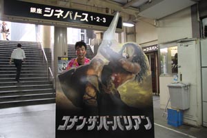 映画『コナン・ザ・バーバリアン』の公開を記念して、6月18日、銀座シネパトス劇場にて、主人公コナンの顔抜きパネル設置の落成式が行われました。