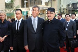 授賞式前に行われたレッドカーペットアライバルに参加した高倉健は、映画祭の最高責任者であるセルジュ・ロジーク氏と腕を組みながら各国からのゲストの先頭を切ってレッドカーペットを笑顔で歩きました。