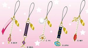 5人の魔法少女達のソウルジェムとコスチュームをモチーフにした、美しいストラップ5種。