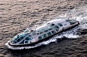 松本零士氏が宇宙船をイメージしてデザインした,シルバーメタリックの流線型の船体を持つヒミコ号とホタルナ号。隅田川、東京湾を運航するこの2隻を,映画公開を記念して、7月20日(土)から『キャプテンハーロック』がジャックします!