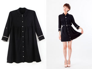 落ち着いたブラックカラーのシャツワンピはオフィスルックにも最適です。
