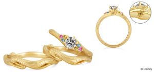 “ラプンツェル”をモチーフとしたブライダルリングは、新作の他すでに発売を迎えたデザインも含め、結婚指輪と婚約指輪をセットとした計2セット展開しています。