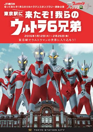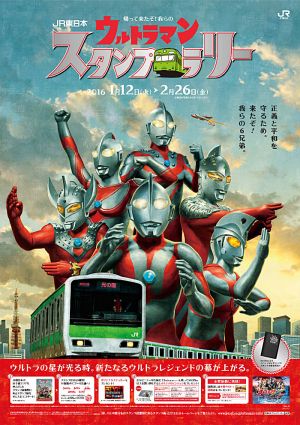 株式会社 円谷プロダクション(本社:東京都渋谷区、代表取締役社長:大岡 新一)が製作した「ウルトラマンシリーズ」が放送開始から50年を迎える2016年、『ウルトラマン』『ウルトラセブン』『帰ってきたウルトラマン』『ウルトラマンA』『ウルトラマンタロウ』のヒーロー・怪獣・メカニックが登場するスタンプラリーを、2016年1月12日(火)〜2月26日(金)の期間中、JR東日本の山手線エリアを中心とした63駅+東京モノレール2駅の全65駅にて実施致します。