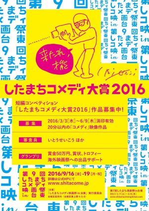 日本の明日を笑わせろ!若き才能の発掘!「したまちコメディ大賞2016」作品募集締め切り迫る!!