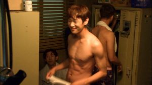 パク・ボヨン演じるナ・ボンソンがシャワー中の男性調理スタッフたちを覗き見した後のシーンを収録しているところ。覗かれた調理スタッフは「お前はここでシャワー浴びたことないだろう」と慌てふためき、「今日は暑いから浴びようかと…」とさらりと交わすパク・ボヨン。セクシー幽霊スネに憑りつかれているため、発言も大胆。そして、ここで際立つ肉体美を惜しげもなく披露しているのは、エリート&イケメン調理スタッフであるソ・ジュンを演じるクァク・シヤン。本作ではボンソンの先輩として彼女を優しく包む“見守り系男子”として好演!「俳優を転職」と語る彼は、「私たち結婚しました」では実力派女優のキム・ソヨンと共演しバラエティ番組でも本領発揮。所属事務所の俳優4人で構成されたプロジェクトグループ“One O One(ワン・オー・ワン)”では歌手としても活躍している、今後が注目される才能溢れる期待の若手俳優。彼の肉体美に釘付けになること間違いなしです!