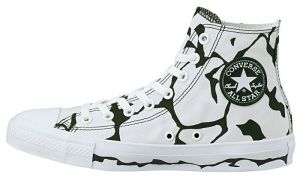 宇宙怪獣“エレキング”をモチーフに、まだらな白黒柄とソール周りに施したプリントが特徴的なオールスター。アッパーの白地部分には蓄光加工を施し、暗闇で光るという仕掛けも。