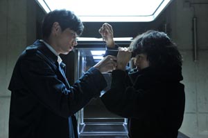 ロシア、ウォール街そして渋谷でのデスノートによる大量殺人が行われる中、ICPOから派遣された竜崎を迎え入れたデスノート対策本部。今回、解禁となった場面写真は2人の関係を表す貴重な2枚。