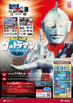 株式会社 円谷プロダクション(本社:東京都渋谷区、代表取締役社長:大岡新一、以下「円谷プロ」)が制作したウルトラマンシリーズの放送開始50年を記念して、「完全版 ウルトラマン フレーム切手セット」を2016年7月8日(金)より全国の郵便局(一部の簡易郵便局は除く)で申込受付を開始します。