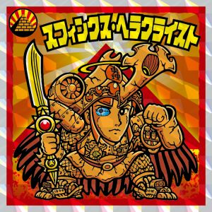 今回、『キング・オブ・エジプト』とのコラボレーションのオファーを頂いたとき、 ビックリマンの世界観と「神話」という点で面白く融合できるのではと思い、取組みをさせて頂くことにしました!『キング・オブ・エジプト』の世界観とビックリマンキャラクターの融合を最初に考えたときに、スフィンクスをモチーフにと考え、 映画の中でキーになる「神の眼」をよりいかせるキャラクターコラボレーションにしようとしたときに思いついたのが、天聖界の守護神ヘラクライストが砂の化身スフィンクスと融合し、「神の眼」を光らせ世界を支配する新たなキャラクターとして創造された『スフィンクス・ヘラクライスト』でした。シール裏書き説明にもご注目ください!