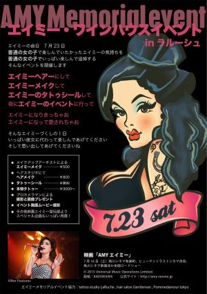 映画『AMY エイミー』7月23日(土)はエイミー・ワインハウスの命日。メイクにヘアスタイリング、タトゥまで!!エイミーを堪能できるメモリアルイベント開催決定!