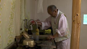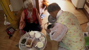 食事の時は準備から片づけまでおばあさんを手伝い、美味しいと言って料理を食べる。