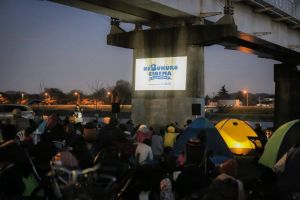 2015年12月に調布に住む父親たちが、小さなこどもたちと一緒でも気楽に映画が観れるようにと、多摩川河川敷に一夜限りで作った映画館です。