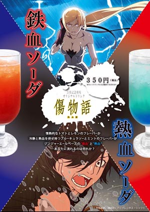 ①キスショットのブルーソーダ:「傷物語〈Ⅱ熱血篇〉」キービジュアルの“青”をイメージ。