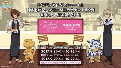 ★第4章「喪失」でのコラボに続き、第5章「共生」の劇場上映を記念したコラボカフェ、『「デジモンアドベンチャー tri.」 MUSIC CAFE in アニ ON STATION The 2nd』が、東京と大阪の2か所で開催決定!