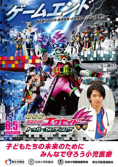そしてこの度、「劇場版 仮面ライダーエグゼイド トゥルー・エンディング」と厚生労働省とのタイアップ企画として、「子どもたちの未来のために みんなで守ろう小児医療」をキャッチコピーにコラボレーションポスターを制作しました。そして本日、「こども霞が関見学デーの 「仮面ライダーエグゼイドが、厚生労働省へやってきた!!」」としたイベントを開催し「仮面ライダーエグゼイド」宝生永夢を演じている飯島寛騎さんが子どもたちと一緒に救急医療のデモンストレーションを体験しました!