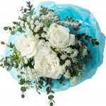 1月中旬~3月末までの期間中、全国約300店のコラボ花店では、映画をイメージした「雪の華ブーケ」をご購入いただけます。映画のもつ切なさや、本編の半分を撮影したフィンランドのイメージから、各ショップがオリジナルでデザインする白い花×青いラッピングの花束になります。